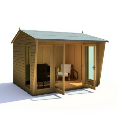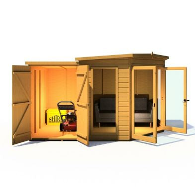 Mercia Studio 10' 11" x 16' 10" Pent Cabin with Shed - Premium 44mm Cladding Loglap - White UPVC