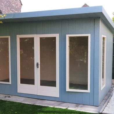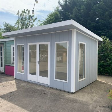 Mercia Studio 10' 11" x 16' 10" Pent Cabin with Shed - Premium 44mm Cladding Loglap - Grey UPVC