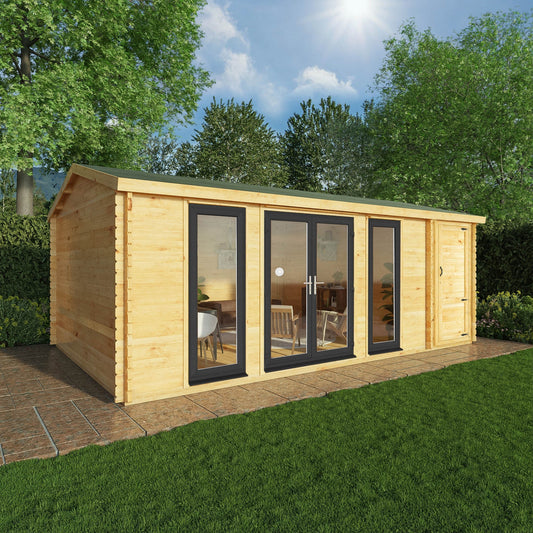 Mercia Studio 13' 7" x 20' 2" Apex Log Cabin - Premium 44mm Cladding Loglap - Grey UPVC