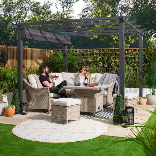 Garden Gazebo 3M x 3M Cream Canopy + FREE Additional Gazebo Cover Charcoal By Croft
