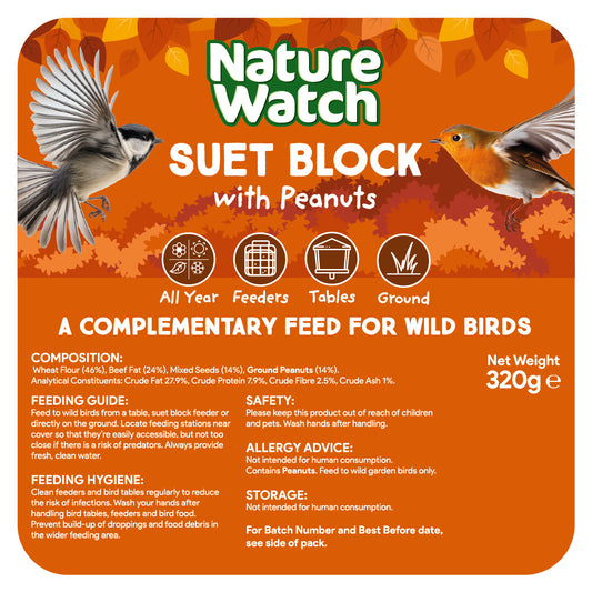 Suet Block Bird Feed With Peanuts By Nature Watch - 320g