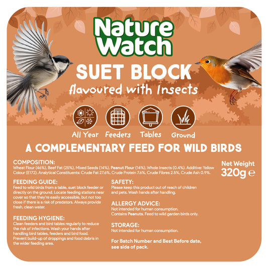 Suet Block Bird Feed With Insects By Nature Watch - 320g