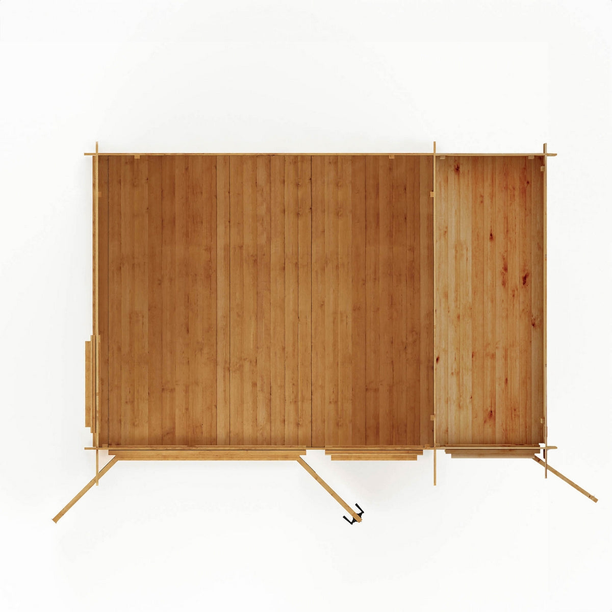The modern flat roof gives the log cabin a contemporary style, while encouraging the drainage of rain water to prevent any build-up that could damage the building. The roof is covered with high quality mineral felt that will protect your cabin from the elements and increase its longevity. The cabin is supplied with antique style handles and hinges, and we supply a lock and key for securing your building when not in use.