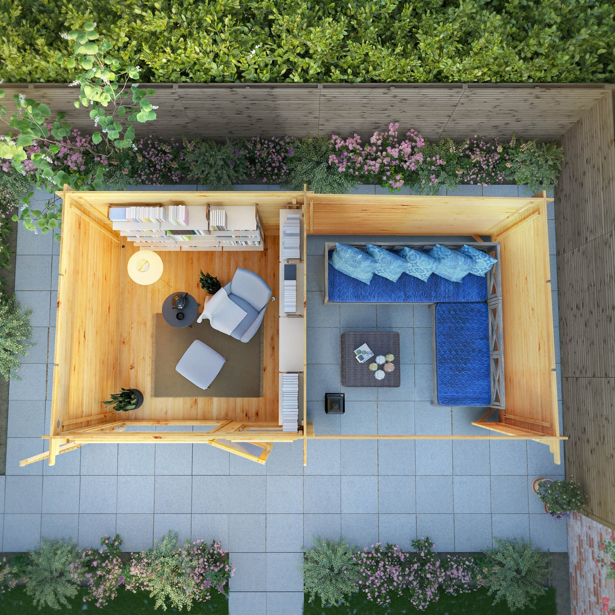 By incorporating a patio area, you can enjoy the outdoors while staying sheltered. Perfect for relaxation, it can transform into a cosy outdoor space, a hot tub hideaway, or a shaded area for children to play away from the sun. Please note, you can place the patio on either side of the building to fit your preferences. The log board thickness for the patio area is 28mm.