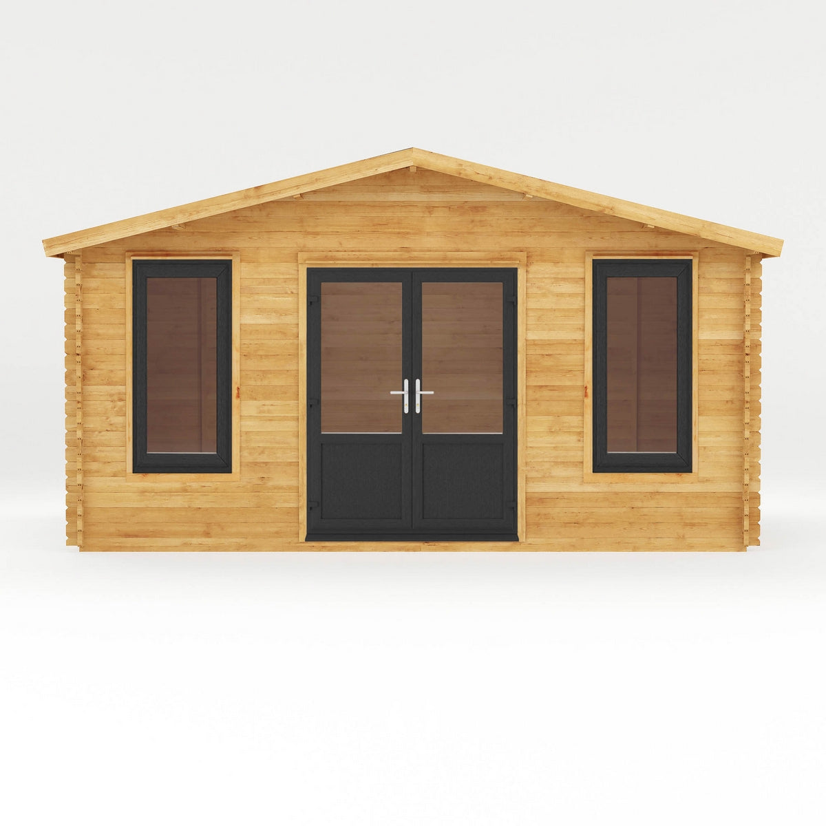 Mercia Retreat 11' 3" x 16' 10" Apex Log Cabin - Premium 44mm Cladding Loglap - Grey UPVC