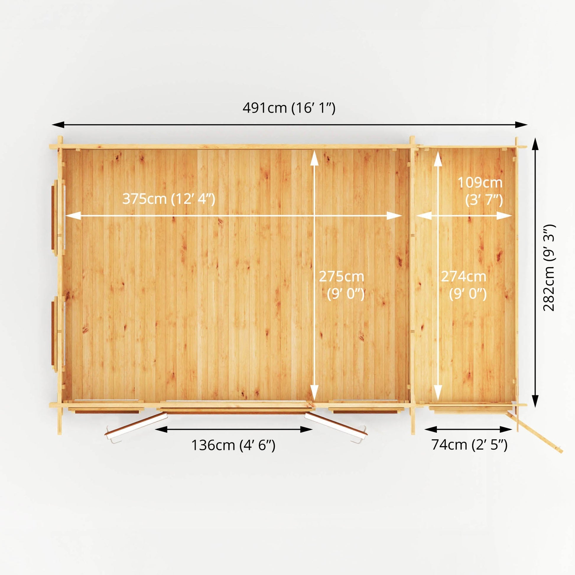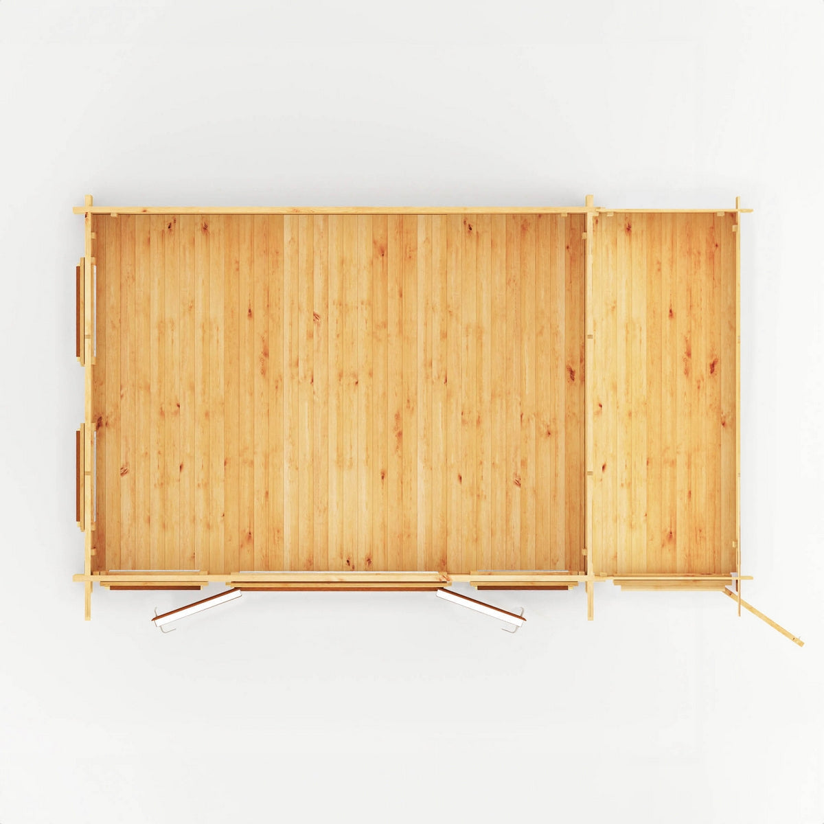 Mercia Studio 10' 11" x 16' 10" Pent Cabin with Shed - Premium 44mm Cladding Loglap - Brown UPVC