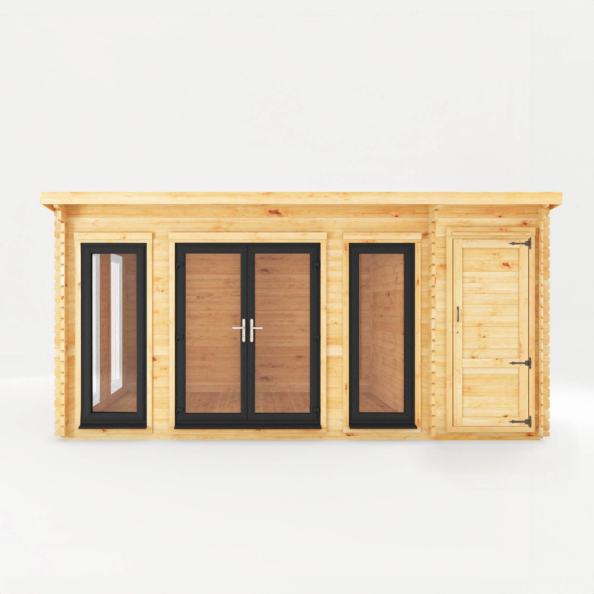 Mercia Studio 10' 11" x 16' 10" Pent Cabin with Shed - Premium 44mm Cladding Loglap - Grey UPVC
