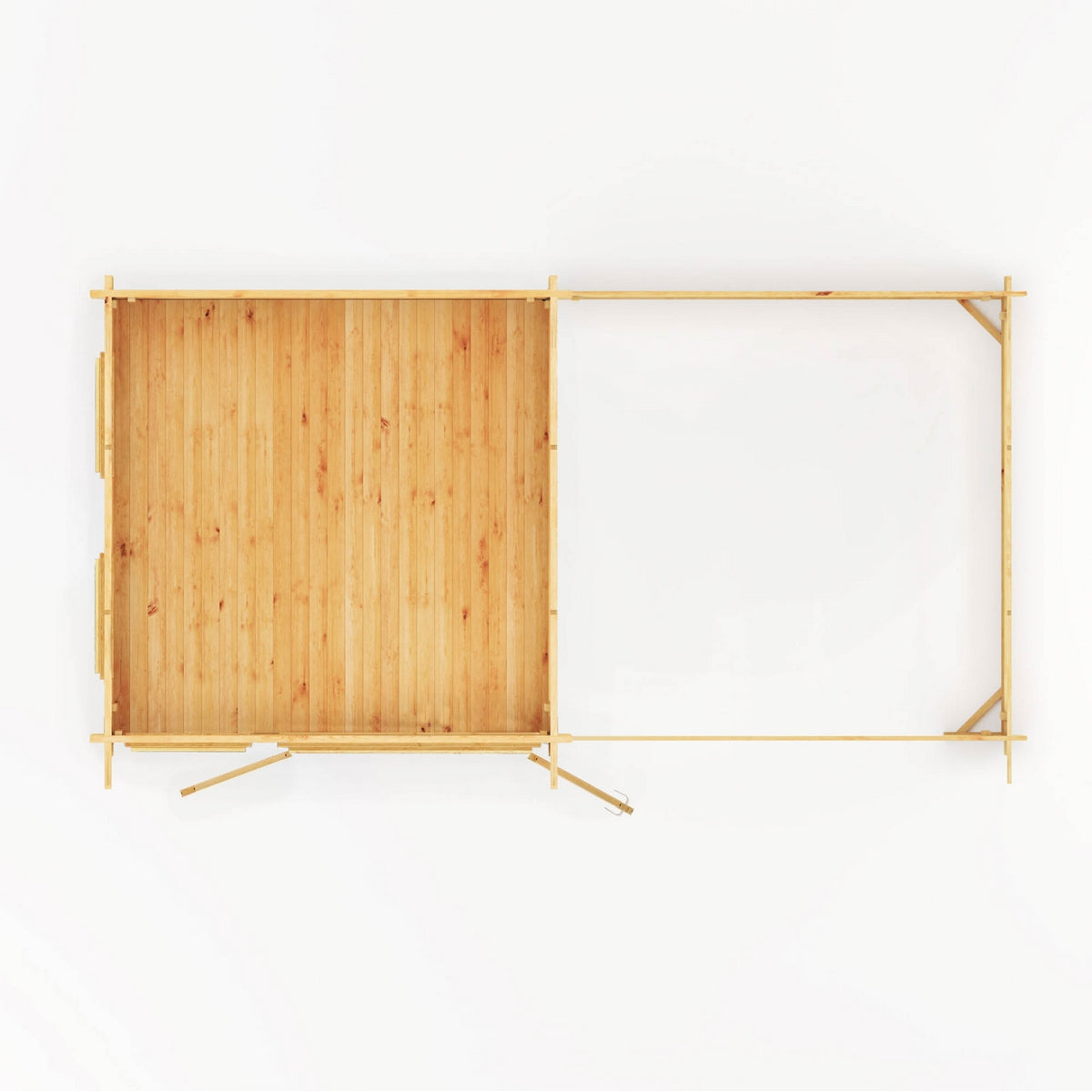 The addition of a slatted area, which can be added either side of your log cabin, provides an additional space for relaxing or entertaining. Perfect for al fresco dining, or reading a book beneath the sound of tweeting birds, it makes the ideal enhancement for your new log cabin. The log board thickness for the slatted area is 28mm.