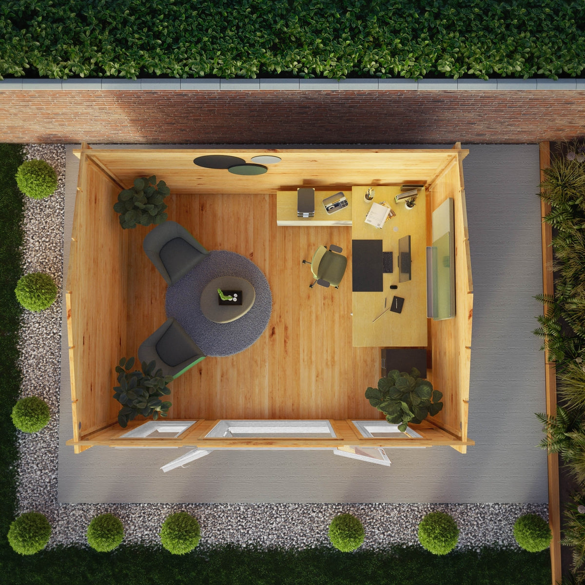 The roof and floor of the Home Office Studio are constructed using hard-wearing 16mm tongue and groove boards that interlock to create robust and strong panels, ideal for all your belongings. In addition, high quality roofing felt is supplied to protect your log cabin from the elements and provide longevity. An additional vent promotes airflow within the cabin, reducing the risk of moisture inside the building and enhancing overall ventilation.