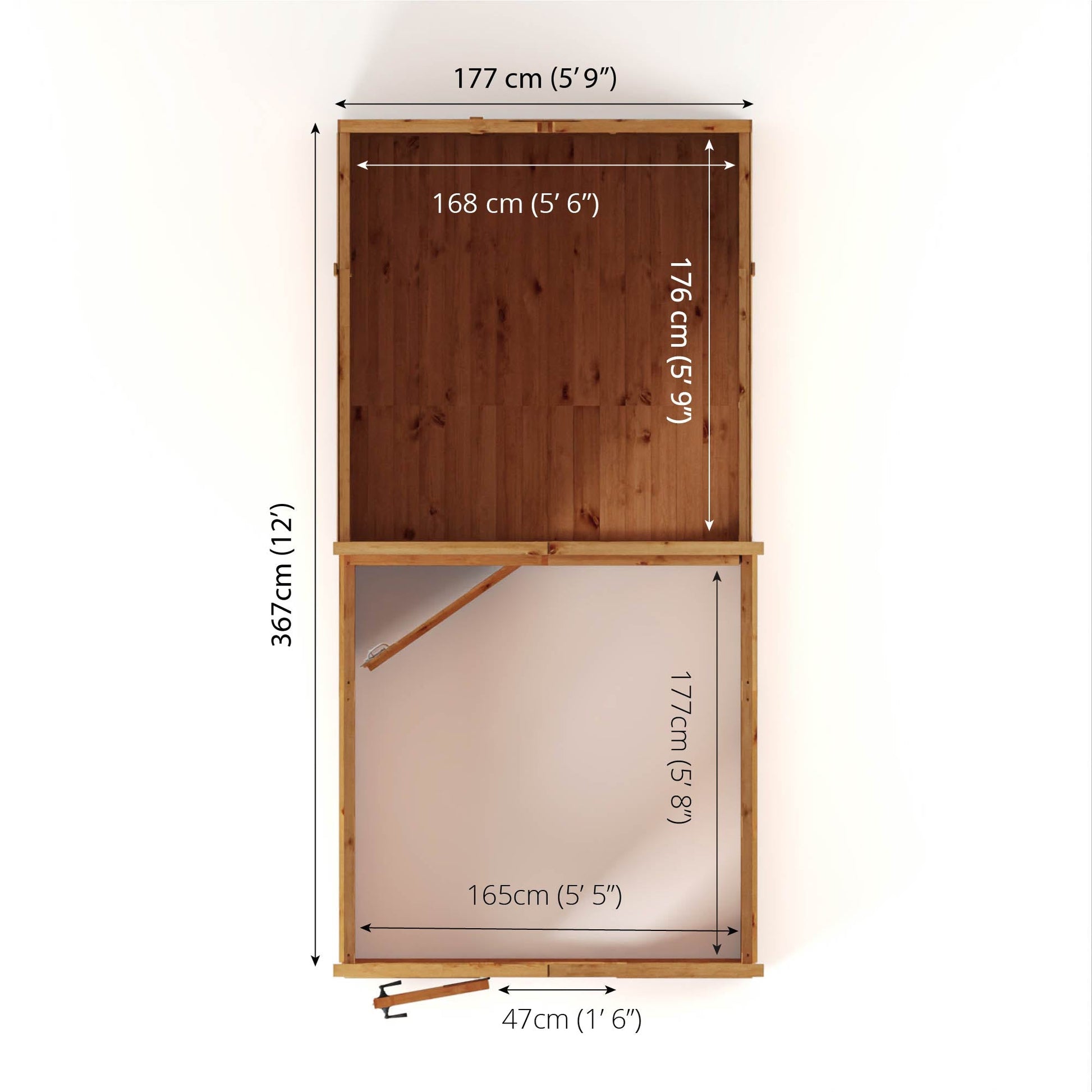 Please note - size 12' 3" x 6' 3" is approximate and based on a bird's eye view of the structure, including the roof.
