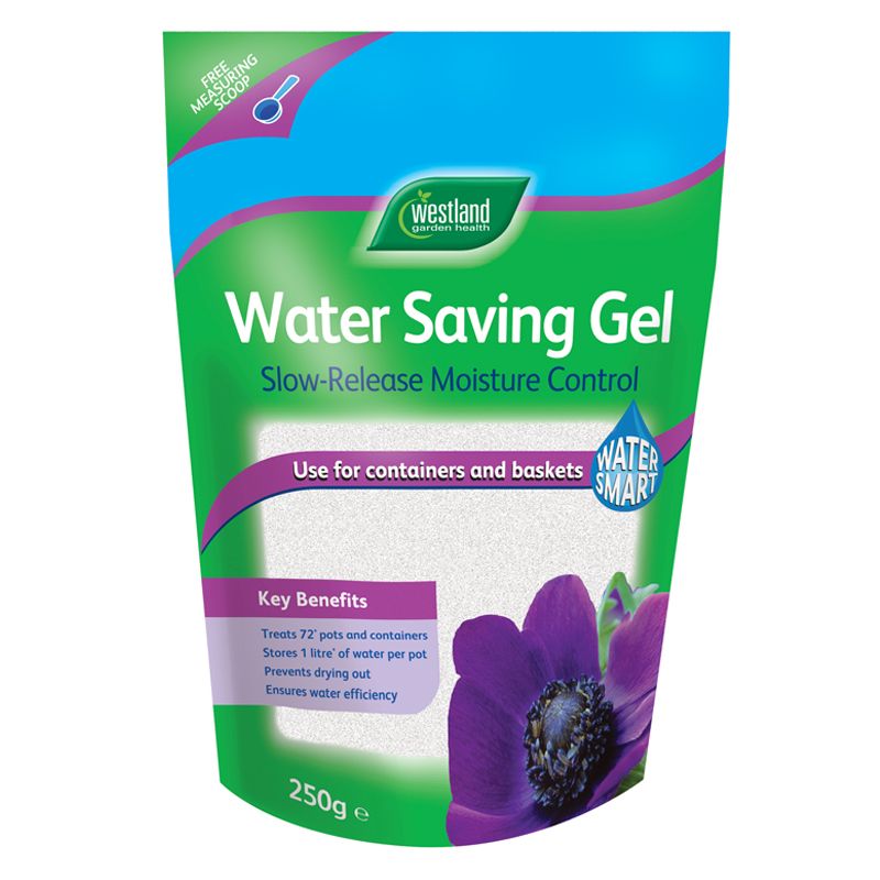 Westland Water Saving Gel 250g is the ideal garden product for slow release moisture control. For use in containers and hanging baskets to prevent plants drying out. The free measuring scoop enables you to add just the correct amount of gel to each pot. Aids water efficiency in your garden.