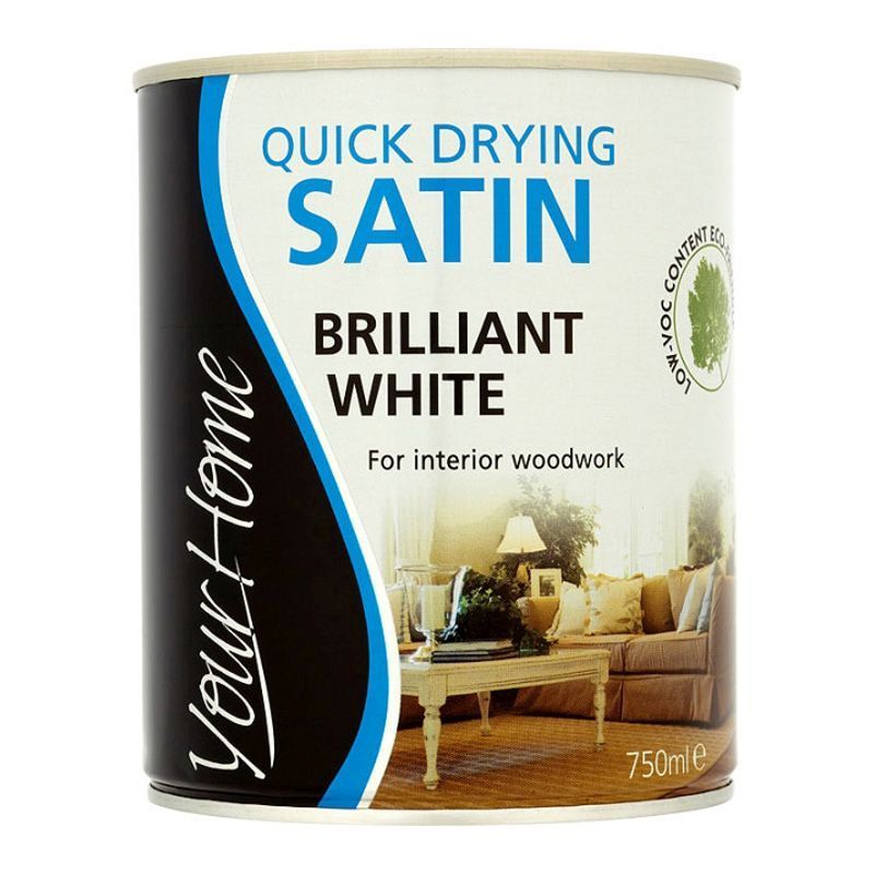 Your Home Quick Dry Satin Paint 750ml - Non-Yellowing White